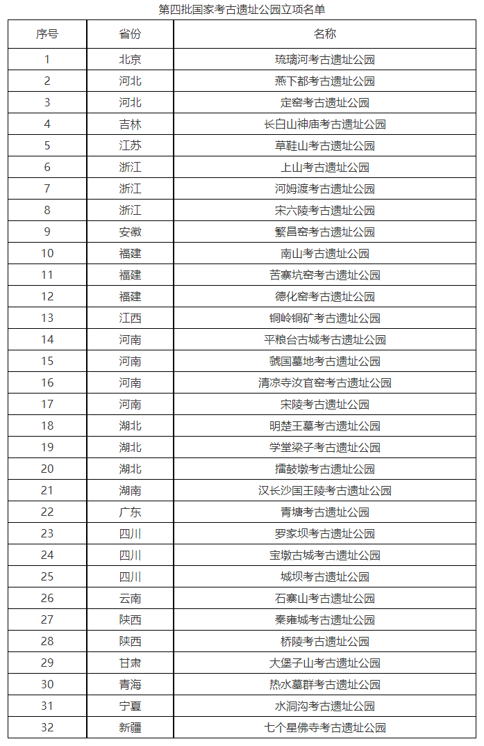 根据材料审核、现场考察和专家评议等情况,泥河湾等19处考古遗址公园列入国家考古遗址公园名单,琉璃河等32处考古遗址公园列入国家考古遗址公园立项名单。