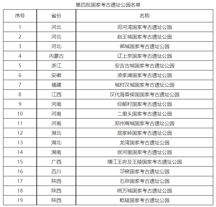 据国家文物局消息,根据《国家考古遗址公园管理办法》等有关规定,国家文物局组织开展了第四批国家考古遗址公园评定工作。