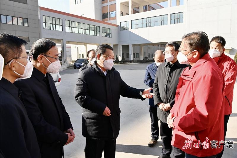 ▲2022年12月31日,省委副书记、省长任振鹤在兰州新区调研重点医药企业生产保供工作。新甘肃·甘肃日报记者 盛学卿
