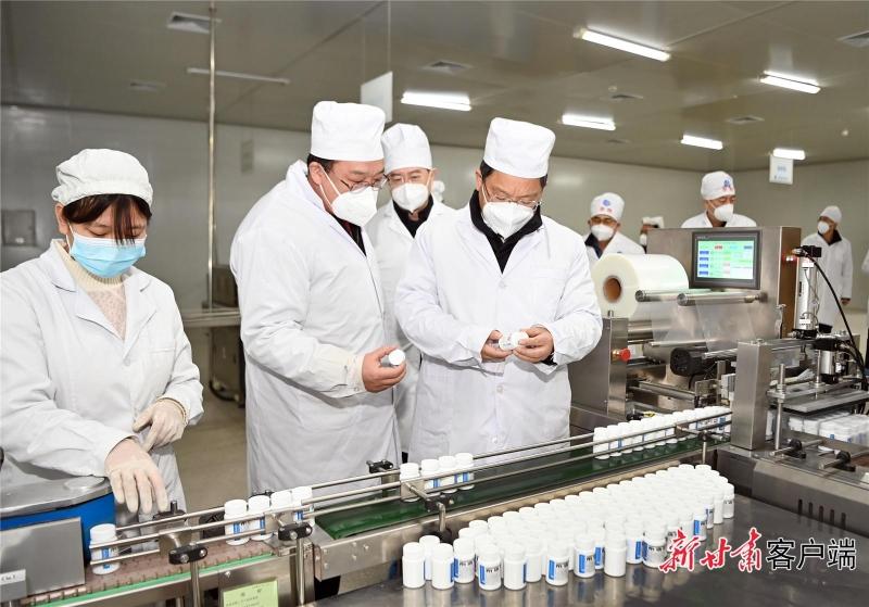 在兰州佛慈制药股份有限公司和甘肃兰药药业有限公司,任振鹤详细询问重点药品生产规模和增产扩产中存在困难问题,走进生产线深入了解企业产能释放、产品质控等情况。他指出,药物是抵御疾病的有力武器,是疫情流行期间群众最“急难愁盼”的问题之一,也是当前医疗物资保供的重中之重。我省医药产业基础较好,中医药资源优势突出,具备快速提升产量、提供多品种防疫药品的条件。相关医药企业要围绕大局担当尽责,用足用好现有产能,加班加点、加快生产,为保护群众生命安全和身体健康提供有力支撑;有关部门要坚持问题导向、抓住主要矛盾,每日调度、实时监测,打通重点药品稳产增产堵点,保障企业生产不断、供应稳定。