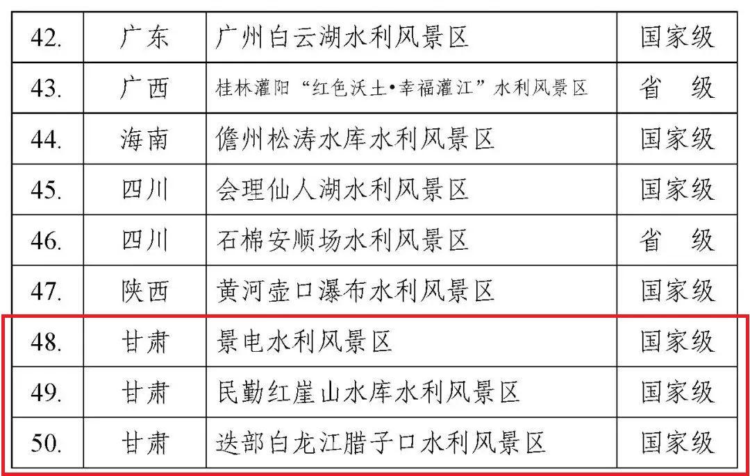 该名录由水利部精神文明建设指导委员会办公室和水利部水利风景区建设与管理领导小组办公室联合发布。经景区申报、省厅(流域)审核推荐、现场核查、专家复审、领导小组成员单位审核及网络公示等程序,包括甘肃3个风景区在内的共50个水利风景区入选。
