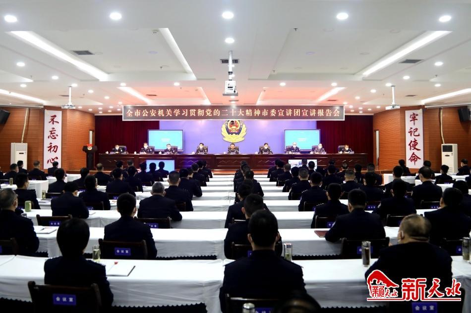 新天水讯【记者王琴】1月9日下午,市公安局召开全市公安机关学习贯彻党的二十大精神市委宣讲团宣讲报告会,副市长、市公安局党委书记、局长郭庆祥作宣讲报告。