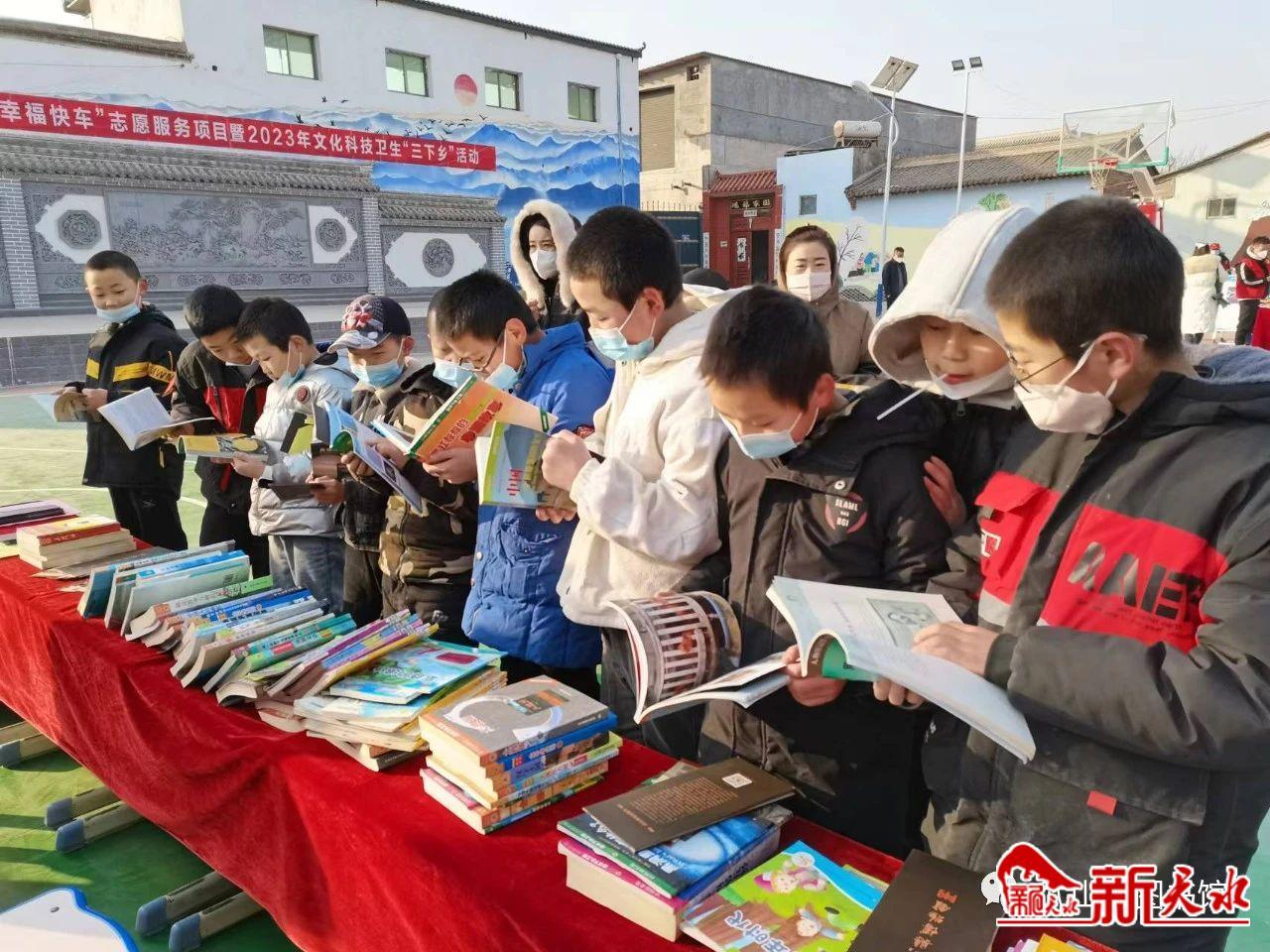 新天水讯 寒冬岁末,春节将至。为深入贯彻落实党的二十大精神,弘扬中华优秀传统文化,培育社会主义核心价值观,丰富群众精神文化生活,充分发挥图书馆倡导读书、服务群众的重要作用,进一步加强基层文化建设。1月9日,县图书馆深入洛门镇大柳树村开展了“送书 送展览”进农村活动,为广大农民群众送去了丰富的精神食粮。