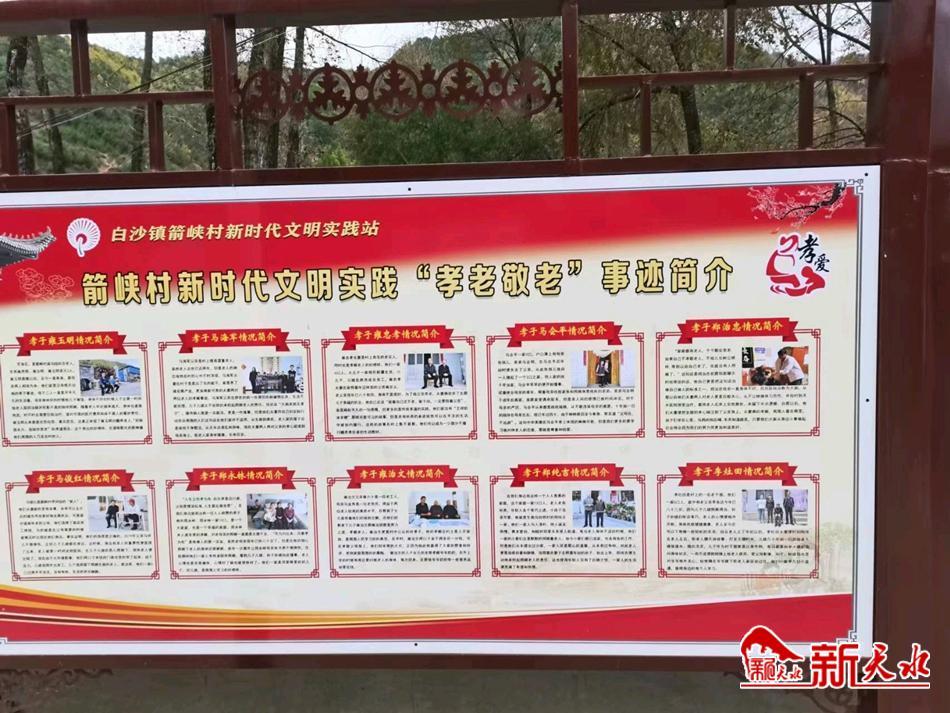 以“评”为抓手,强化示范带动。开展孝老爱亲评比,选树孝文化模范代表,在村内开展“孝老爱亲”模范、“好婆婆、好媳妇”“孝心少年”以及“文明家庭”等各类评选活动,选树一批批孝文化模范代表,设立“孝老爱亲”模范事迹宣传栏,大力宣传先进典型事迹,充分发挥典型示范引领作用,带动身边群众以孝为先、以德持家,弘扬中华民族尊老敬老传统美德,营造尊老、敬老、爱老、助老的良好社会风尚,培育文明乡风、淳朴民风。今年以来,共评选“孝敬老人”模范10人,文明家庭5户,“好婆婆、好媳妇”5人。 新时代文明实践站接地气、聚人气,真正为基层群众带去了文明新风,服务群众,传递正能量,弘扬主旋律,与文明同行,与大爱相伴,如今,传统孝道文化不断在白沙镇箭峡村发出勃勃生机,文明新风徐徐吹来,孝老爱亲的社会氛围日益浓厚。(何婷婷)