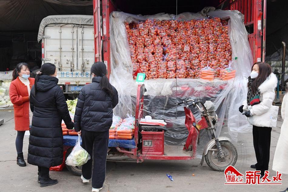 1月11日,记者在天水市瀛池果菜批发市场看到,各类蔬菜货源充足,价格平稳,市民和商贩有序采购和批发所需蔬菜。
