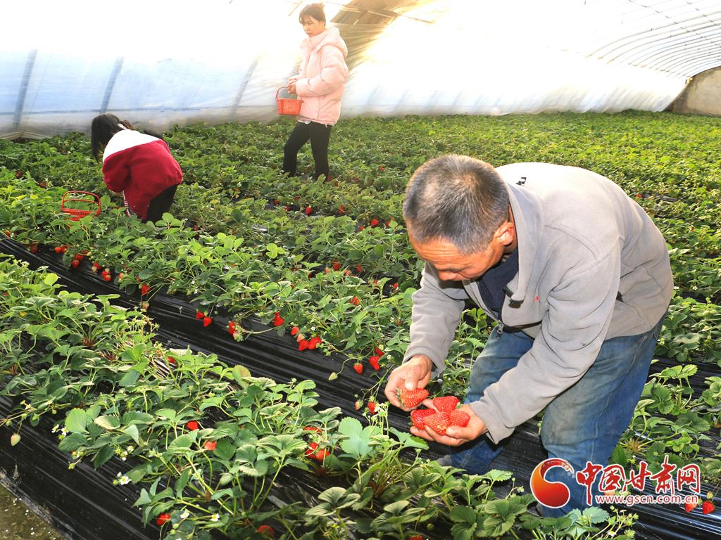 临近春节,岷县市民走进草莓采摘园,提着篮子穿梭在各个大棚之间,开心体验采草莓的乐趣。