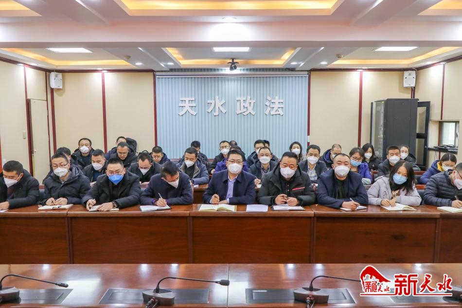 新天水讯【记者童强】1月13日,市委常委、政法委书记邵建斌主持召开市委政法委委务会(扩大)会议暨领导班子理论学习中心组学习会,组织学习习近平总书记对政法工作的重要指示精神和中央、省委政法工作会议精神,传达学习省委、市委有关会议精神和市委八届五次全体会议暨市委经济工作会议精神,研究贯彻落实意见。