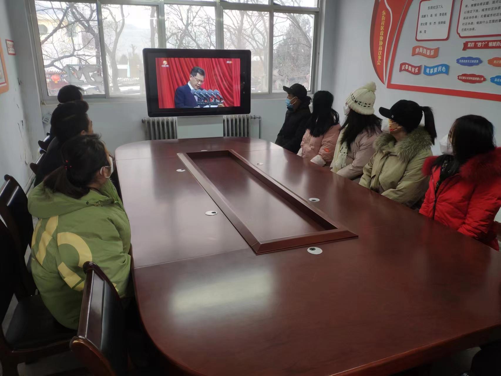 嘉峪关市文殊镇党委干部群众收看省十四届人大一次会议开幕。