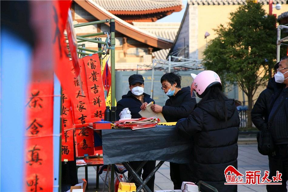 走进天水古城“西关大集、年货旺市” 八个大字格外醒目,红彤彤的灯笼、烫金的“福”字格外喜庆,带有兔子元素的各类年货更是抢手。春联必不可少,摊主张乐平告诉笔者,目前已经写了近四千副春联 现在每天一边写一边销售 市民也可根据自身喜好前来订购。除此之外,不少古城内的商家也将自家私房菜制作成礼盒,在年货大集上售卖。赶大集,办年货,此起彼伏的叫卖声和熙熙攘攘的人群,让整个西关大集充满了浓浓的年味。