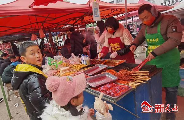 瞧!红火热闹的集市上人如潮涌,各类货品琳琅满目,鞋服、被单、灯笼、福字、对联、干果、大肉、鲜鱼、调料、各种果蔬等样样齐全,还有那冒着热气的小笼包、现场制作的棉花糖、刚捞出锅的炸油饼、热气腾腾的香肉面、小朋友手中的年画和气球、人们喜气洋洋的笑脸……一幅幅喜庆欢闹的场面,融化了飘飞的雪花,驱散了凛冬的寒气。烟火气浓郁的小年乡镇年集,让饱含着乡情的浓浓年味扑面而来。