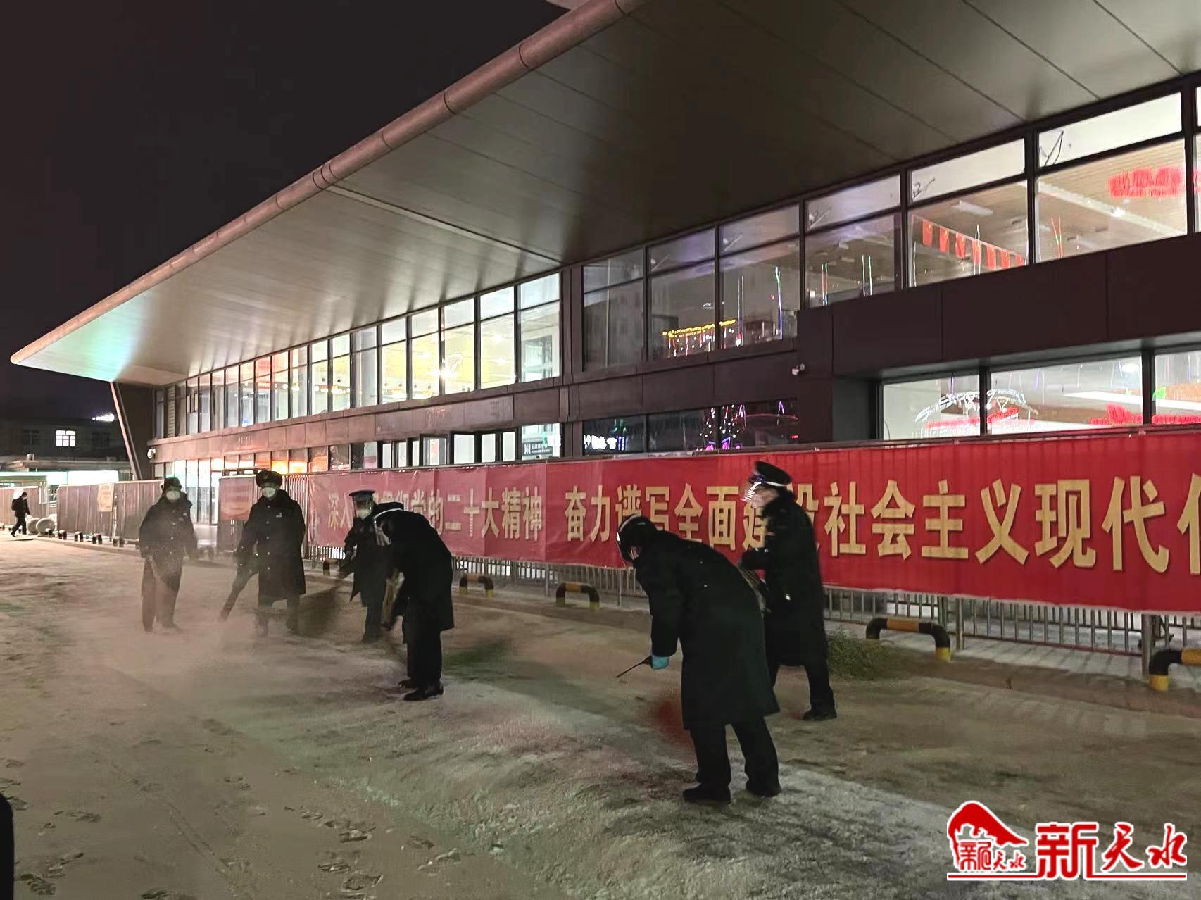 为克服降雪天气不利影响,兰州铁路局天水车站各站积极做好应对临时突发大客流的准备,第一时间组织人力对站前广场、进站通道、站台等旅客走行区域积雪进行清扫撒盐,铺设防滑地垫,设置安全警示牌,防止旅客滑倒摔伤。售票室启动应急备班,根据客流情况及时加开售票窗口,满足“急客”购票出行需求。针对多地降雪导致部分列车晚点的情况,加密广播频次,及时发布列车正晚点信息,并组织专人对旅客进行解释安抚,引导旅客办理车票退改签,保障旅客有序、安全出行。