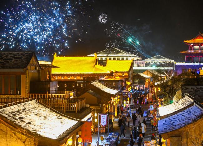 ▲游客在金延安文化旅游产业园内游览(1月14日摄)。新华社发(邹竞一摄)