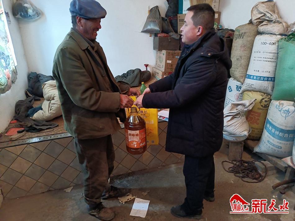 新天水讯【通讯员郭小亮】1月13日,秦州区教育局机关干部职工深入帮扶村秦州区大门镇田于村、张湾村和三合村开展“暖冬行动”春节帮扶慰问活动,为3个帮扶村60户特困供养户、低保户、监测户等特殊困难群众送上米、面、油等生活必需品,向他们致以新春的问候和美好的祝福。