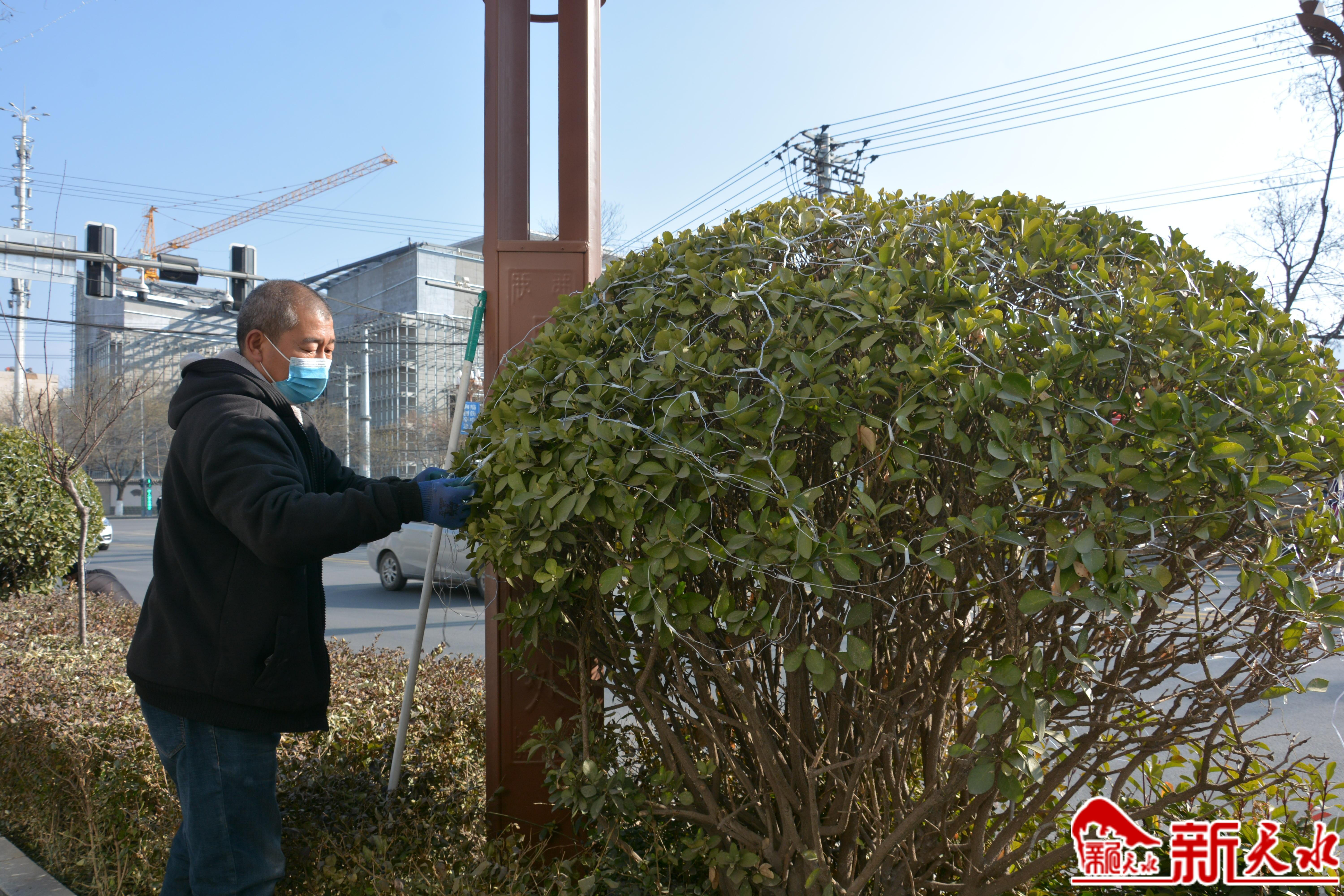 1月12日,记者在甘谷县冀城路采访时看到,工人们正相互配合,有的给绿化树上绑灯串,有的举着长杆悬挂灯饰。“这一段路上主要安装的是LED彩色串串灯,点缀黄光流星雨、金色麦穗、红灯笼、网状灯等。”甘谷县市政公用设施管理所所长唐勇告诉记者,为了给甘谷县营造一个喜庆祥和的节日氛围,扮靓城市夜景,甘谷县住房和城乡建设局实施了2023年城区亮化工程,主要对公园、广场、城区主次干道、绿化带进行多层次、立体感塑造亮化。
