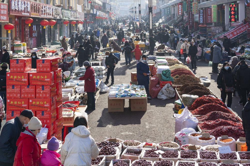 “来点啥?随便挑!”春节临近,黑龙江绥芬河龙须沟步行街年货大集,抑扬顿挫的叫卖声十分响亮。