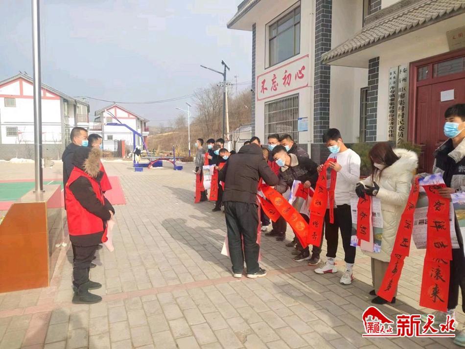 新天水讯【通讯员 马旭辉】1月18日,为了让群众过上一个欢乐祥和的春节,秦州区齐寿镇新时代文明实践所在廖集村开展“迎新春 送春联”新时代文明实践活动。