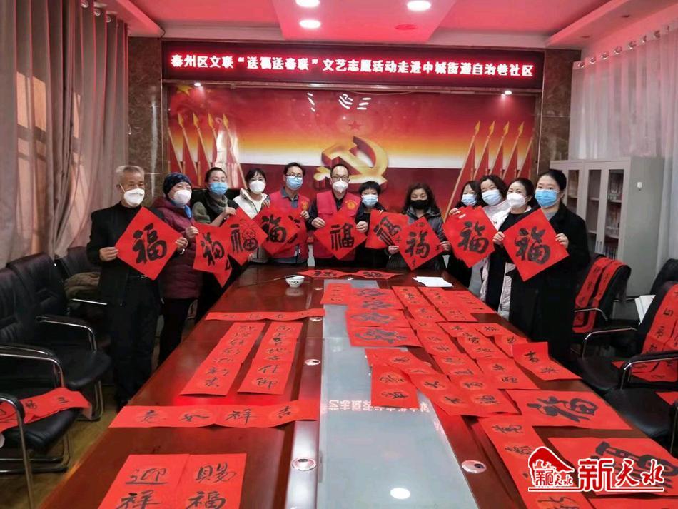 新天水讯【通讯员 赵雅琪】近日,秦州区文联组织文艺志愿者,开展“我们的中国梦——文化进万家”“送五福”文艺惠民活动,营造祥和、欢乐、喜庆的节日氛围。
