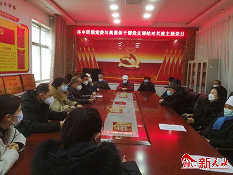 新天水讯【特约通讯员何俐丽】近日,市中医院党委与秦州区中城街道自治巷社区离退休干部党支部联合开展结对共建活动,为离退休老党员办实事、献爱心。