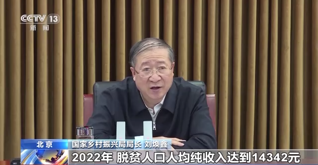 国家乡村振兴局局长刘焕鑫:2022年,脱贫人口人均纯收入达到14342元,同比增长14.3%,高于全国农村居民人均可支配收入6.3%的增速。