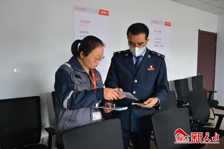“新的一年里,我们公司的纳税信用等级能评定到B级吗?”“对于我们新投产的企业来说,还可以享受到其他优惠政策吗?”……1月17日,当甘谷县税务局一行税务人员来到杰瑞新能源科技有限公司时,财物总监庞磊咨询起了税收优惠政策以及其他问题。