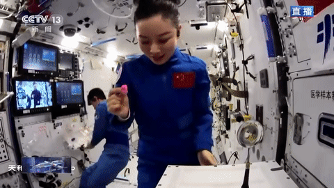 在总台《2023年春节联欢晚会》的开场片中,可爱的吉祥物“兔圆圆”飞上太空,在空间站的舷窗外看到了飘过的一朵水膜花。这个创意正是来源于中国人民解放军航天员大队特级航天员王亚平在“天宫课堂”授课时给孩子们做过的一个实验:一朵绽放在太空的花。