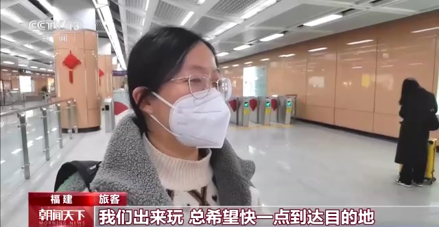 旅客:我们出来玩,总希望快一点到达目的地。我觉得火车站和地铁(之间)有免安检通道这点非常好,就可以节约我很多换乘时间。