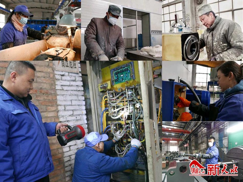 在机械制造公司大件工段,维修电工王师傅和安师傅正在仔细检查着淬火机的各条线路。安师傅说,淬火机年前就“罢工”了,导致床身的生产进度严重滞后。为了让设备尽早恢复作业,他们天天干到晚上一两点,从放假到现在,休息了不到两天时间。再看其他工段磨床、刨床、铣床、车床等机台的师傅们,也是认真研究图纸,细心操作机器,全力保障产品加工质量,为“抢进度、保订单”而马不停蹄忙碌着。