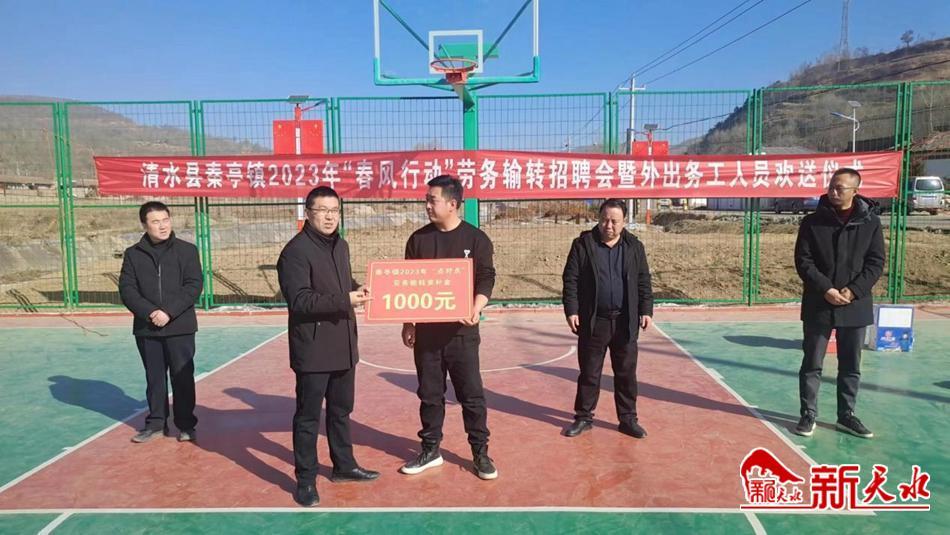 新天水讯 1月29日上午,清水县秦亭镇举办“春风行动”劳务输转招聘会暨外出务工人员欢送仪式,共欢送外出务工人员120余人。