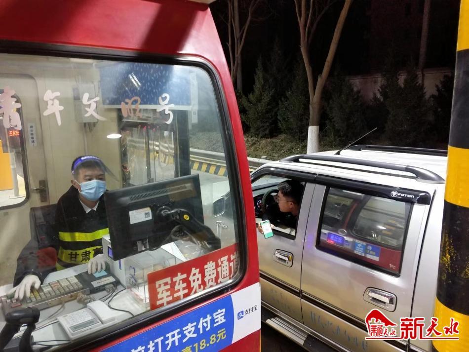 收费员张慧和王娟告诉记者,春节期间天水西收费站出入的车流量猛增,为了保通保畅、安全出行,我们必须坚守一线,靠前指挥、客货分流,让司乘能够尽快回家和家人吃上团圆饭。