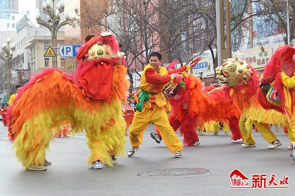 此次汇演共有秦州区16镇7个街道办事处的23大方队约100多个文艺团队参与,社火队伍沿建设路、民主路进行行进式表演,只见腰鼓、秧歌、红绸队一字排开,火红的秧歌队踩着十字步,整齐划一地翩翩起舞;舞龙、舞狮、秧歌、旱船、腰鼓、夹板舞、骑毛驴、大头娃娃纷纷上场亮相,表演者们用自己的方式表达着自己对节日的祝福。现场掌声、喝彩声此起彼伏,人们纷纷举起手机拍照,留下这些精彩的瞬间。