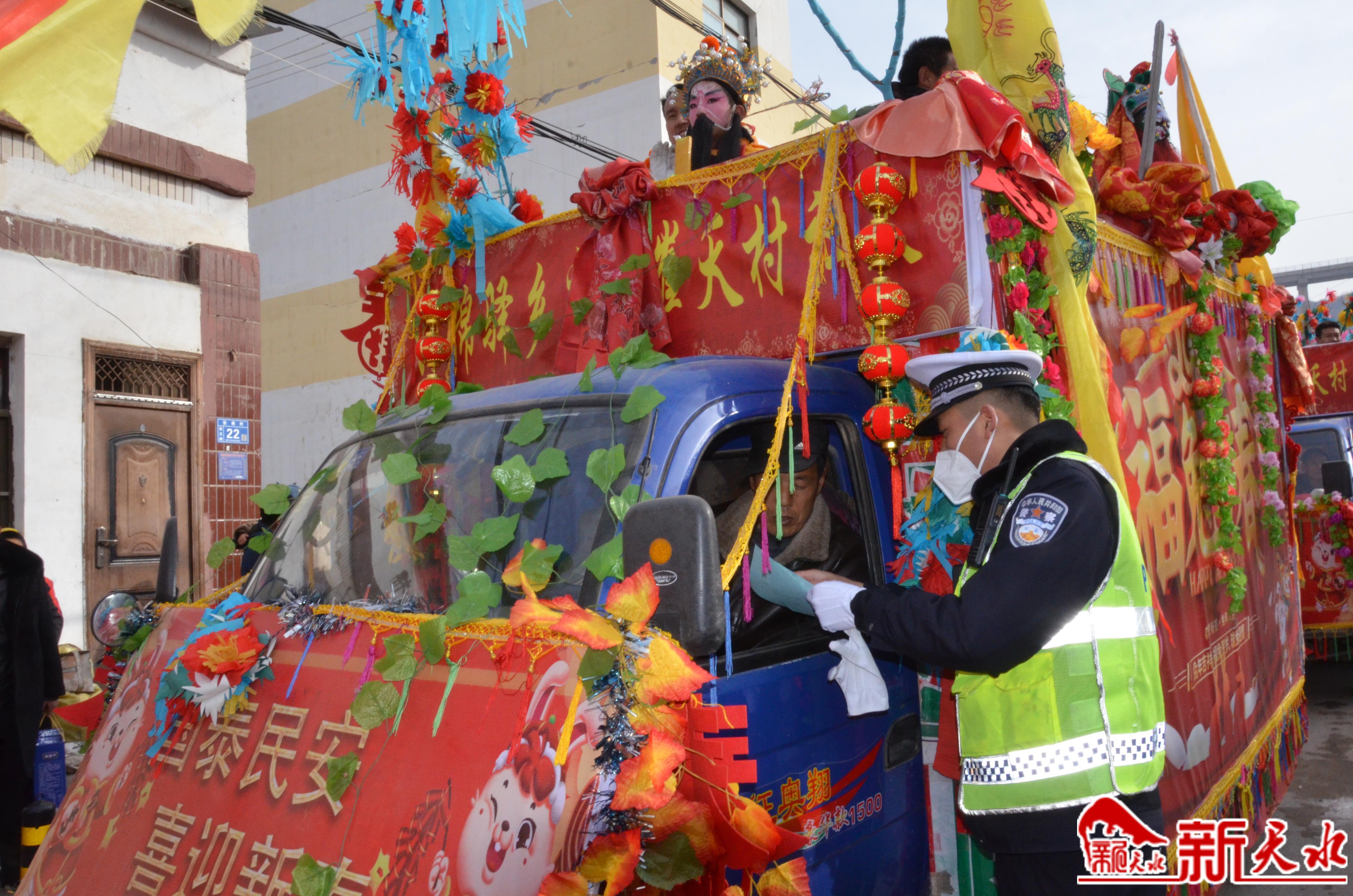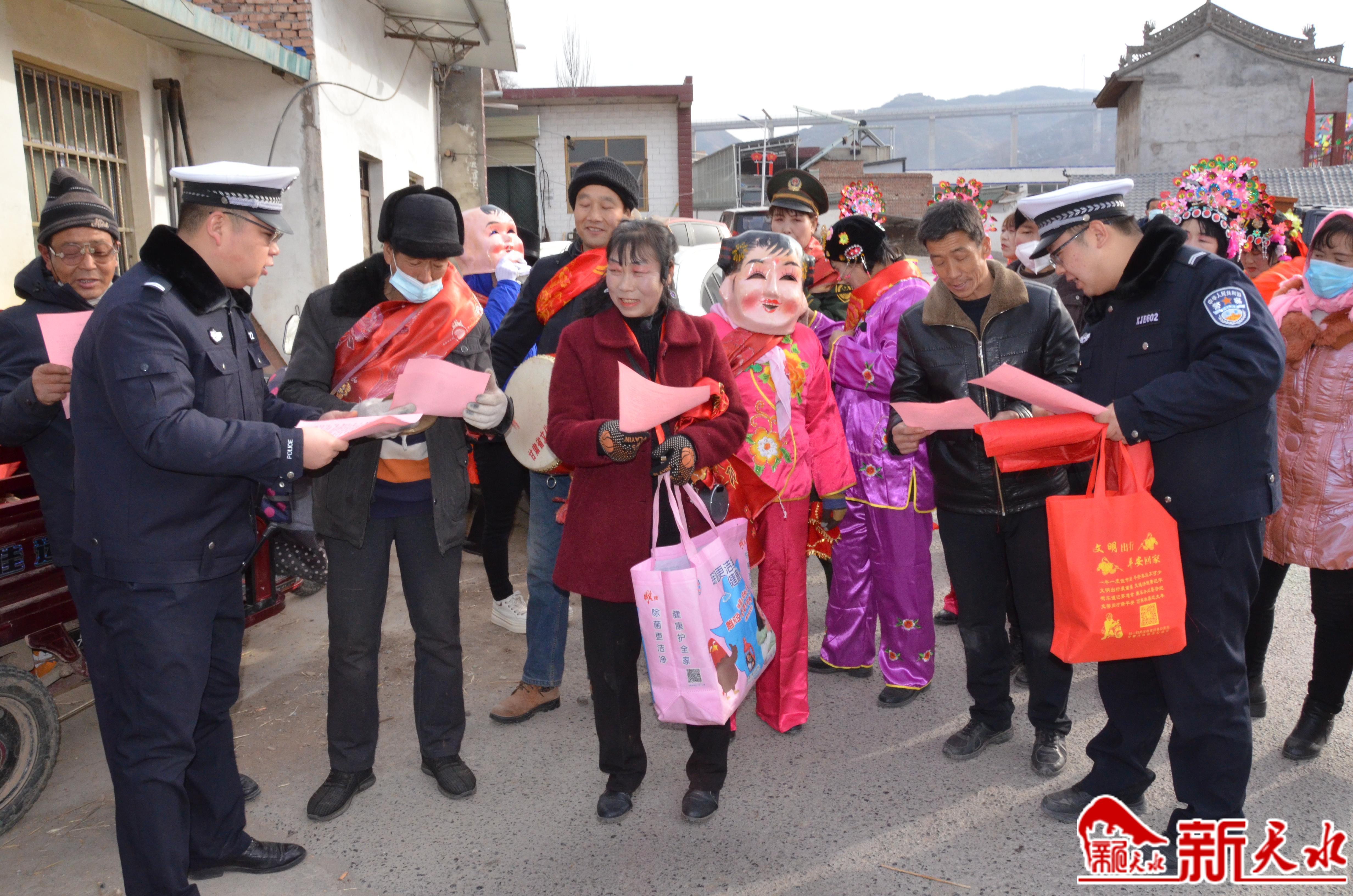 社火舞动闹新春 交警下乡忙宣传