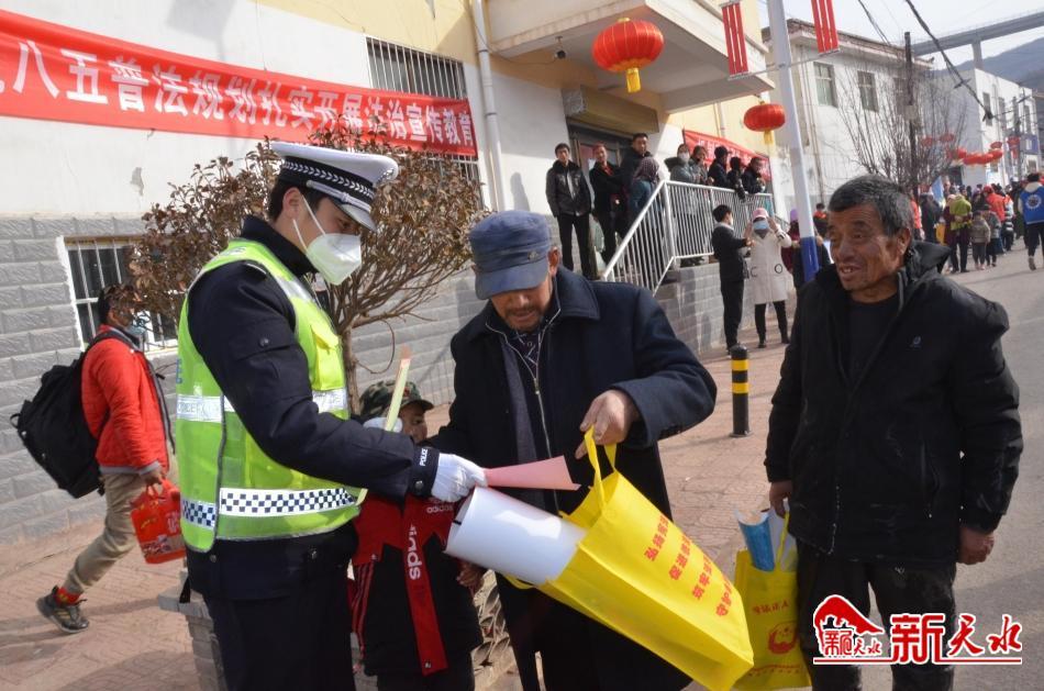 2月2日(农历正月十二)是张家川回族自治县张棉乡一年一度的社火表演日,当天,来自四面八方前来观看社火表演的群众络绎不绝,张家川县公安局交警大队宣传民警紧紧抓住这一有利时机,结合“美丽乡村行”“一老一小”主题宣传活动,向广大交通参与者宣讲交通安全常识。大队宣传民警针对广大交通参与者还沉浸春节吃饭喝酒的喜庆气氛中,有可能出现酒后驾车行为的实际,及时向驾驶人讲解酒后驾驶机动车的危害,告诫广大交通参与者一定要牢记交通安全法律法规,坚决杜绝酒驾行为,为自己及他人的生命安全负责,更要为自己的家庭负责,用文明参与交通的点滴,筑牢平安中国年。新天水记者余碧波 摄
