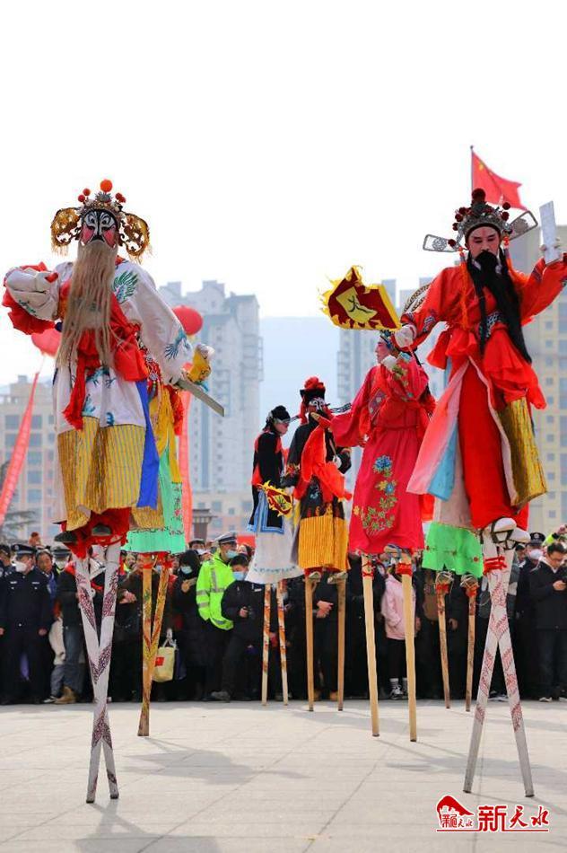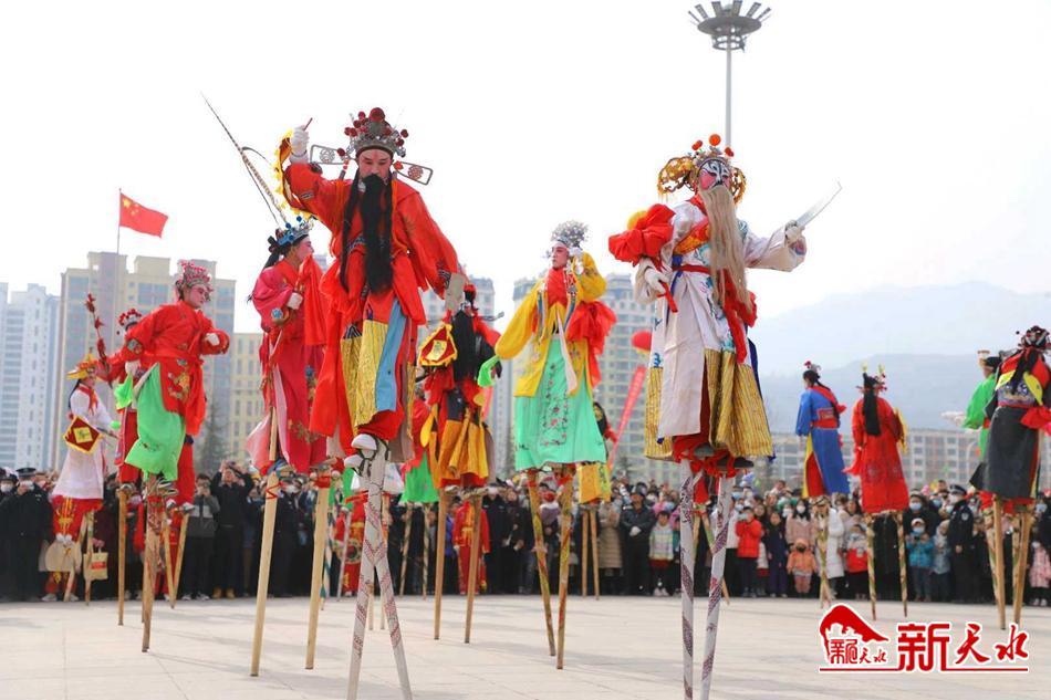 新天水讯 正月十二日,武山县滩歌镇卢坪村高跷队走进县城和水帘洞景区,弘扬中华优秀传统文化,丰富群众文化生活,营造团结奋进、欢乐祥和的节日氛围。