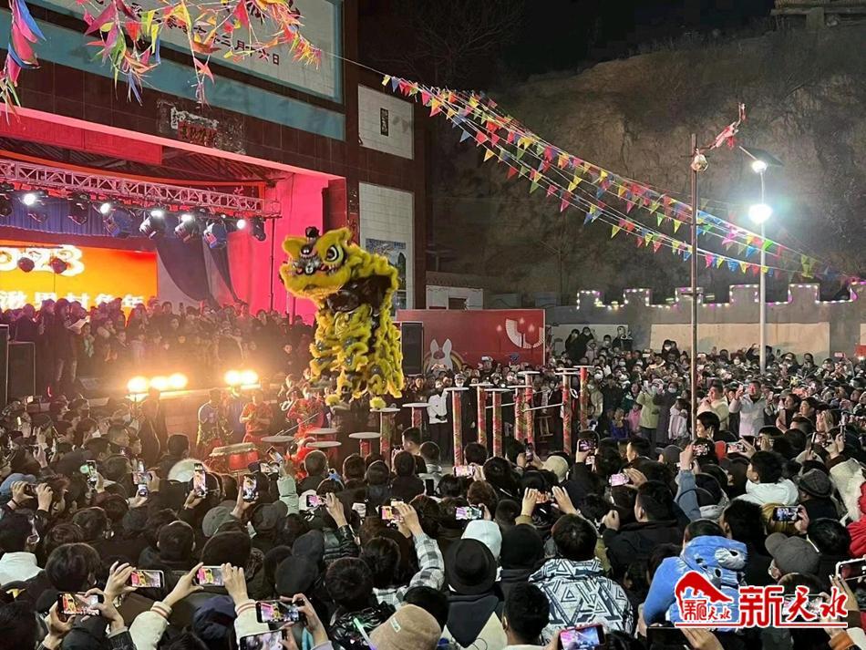 新天水讯 农历正月十二,秦安县莲花镇湫果村文化广场上人头攒动、锣鼓喧天,来自周边的群众齐聚湫果村,观看文艺晚会和社火表演,共贺新春佳节。