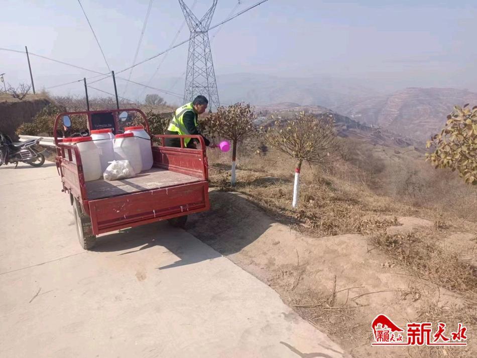 新天水讯 近日,秦安县刘坪镇组织护林员、公益性岗位、党员群众为绿化苗木和行道树浇水,对省道220线、秦洼景区、周湾景区及各村主干道两侧行道树、村委会周边绿化带进行浇灌,全面开展行道树浇水保墒工作。