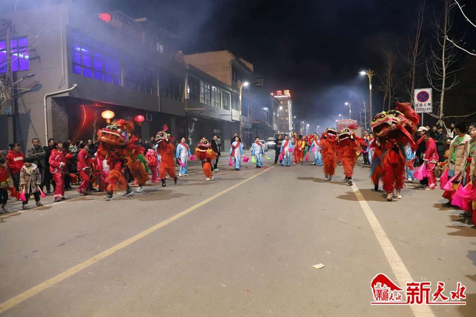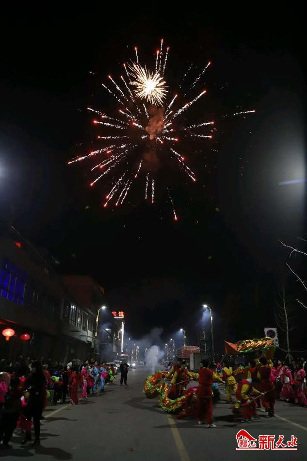 新天水讯【特约通讯员 管秋勇 蒲爱民】 喧天的锣鼓、欢快的秧歌、绚丽的烟花,划破夜空的宁静;唱小曲、扭秧歌、舞狮子、舞龙灯,其乐融融。今年的春节,无论在县城还是乡村,闲暇之余,大家欢聚一堂,载歌载舞,共庆佳节。
