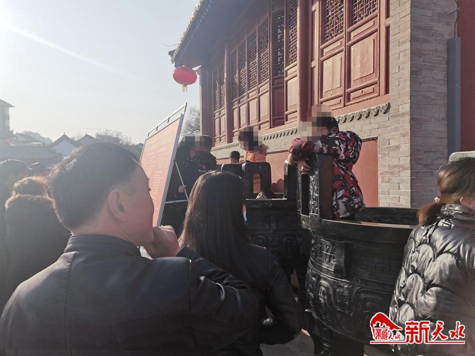 2月5日,在伏羲城,有几个孩子直接爬进了伏羲广场祭祀鼎内,有些家长不仅没有劝阻孩子的这种做法,甚至还把孩子抱进鼎里,这样的做法有失体统。作为家长,应时时培养孩子的文明意识,知礼守礼、文明游览。