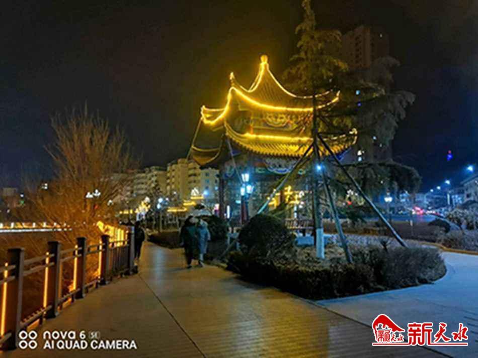 新天水讯【特约通讯员管秋勇 蒲爱民】夜幕降临,华灯初上。走在武山县城的各条街道,一处处别致的亮化景观、一盏盏明亮的路灯,勾勒出武山县秀美的夜色轮廓,在光影的交汇中,整座城市散发着迷人的色彩。城市亮化工程的实施,不仅提升了县城的形象和品位,为居民的夜间活动创造了一个良好的环境,更提升了居民的幸福指数。