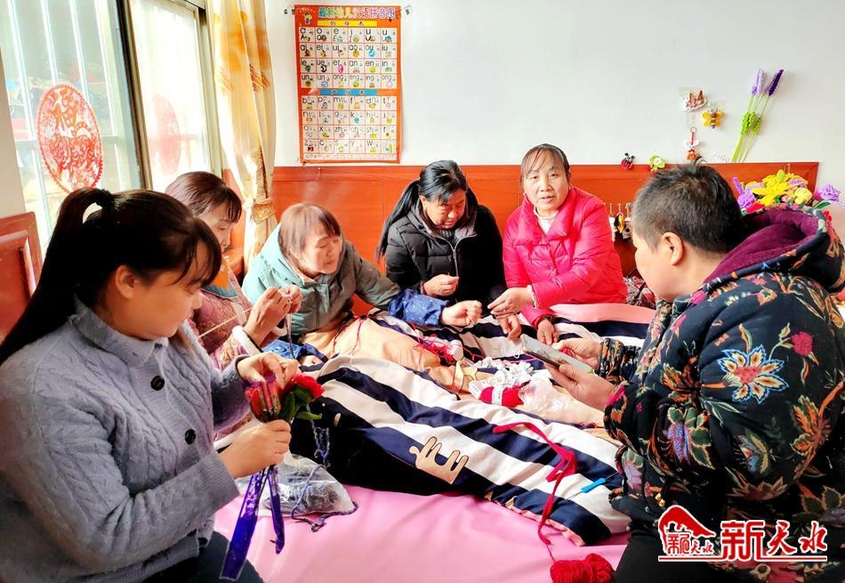 新春已过,村民张小艳家里却还是一派喜庆热闹景象,妇女们围坐在炕头,动作娴熟地编织毛线工艺品。一袋烟的工夫,一件件精美的香包、花朵、小动物、布娃娃等小饰品完成。大家相互欣赏着栩栩如生的小饰品,屋内洋溢着融融暖意。