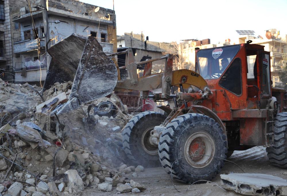 2月9日,大型机械在叙利亚阿勒颇参与救援。新华社发