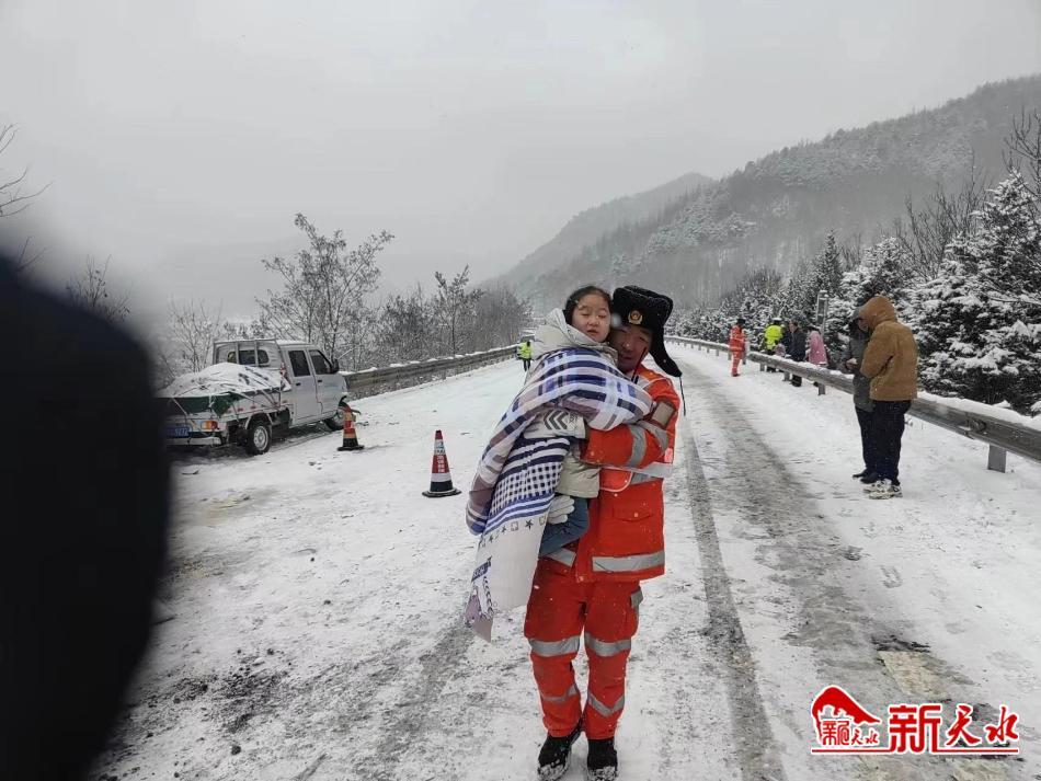 寒风刺骨路面湿滑,天水清障救援二大队的队员们依旧奔波在高速公路上,处理事故的同时不忘安抚司乘、帮助妇幼,给滞留司乘送去应急食物,让群众在寒冷的天气中感受到丝丝温暖。