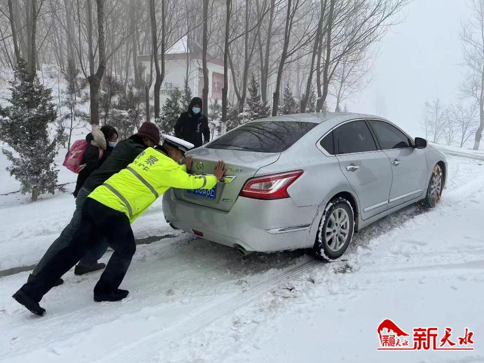 风雪中,我市公安交警全员上岗下沉到一线,疏导交通、加大巡逻管控、隐患排查、劝返不具备通行的车辆,铲除积雪、撒盐防滑,帮助受困驾驶员安装防滑链、将打滑车辆推到安全地带,守护孩子们的上学路、搀扶行动不便的行人……演绎了一幕幕暖心的场面,成了公路上一道亮丽的风景线。