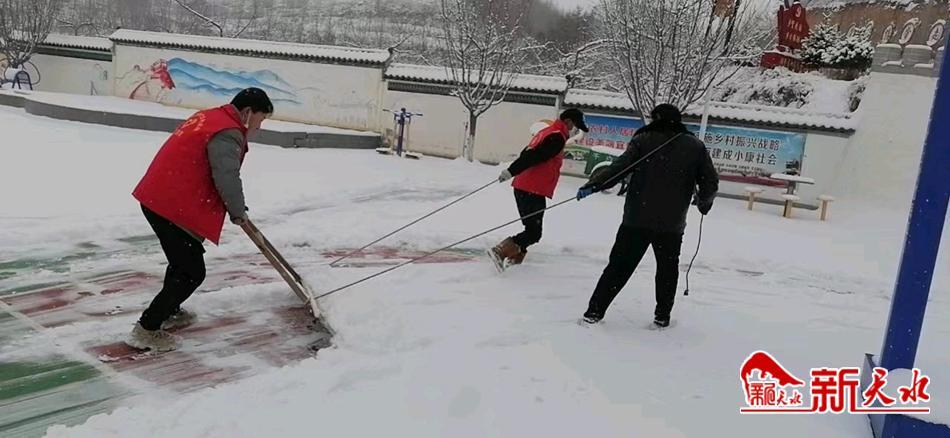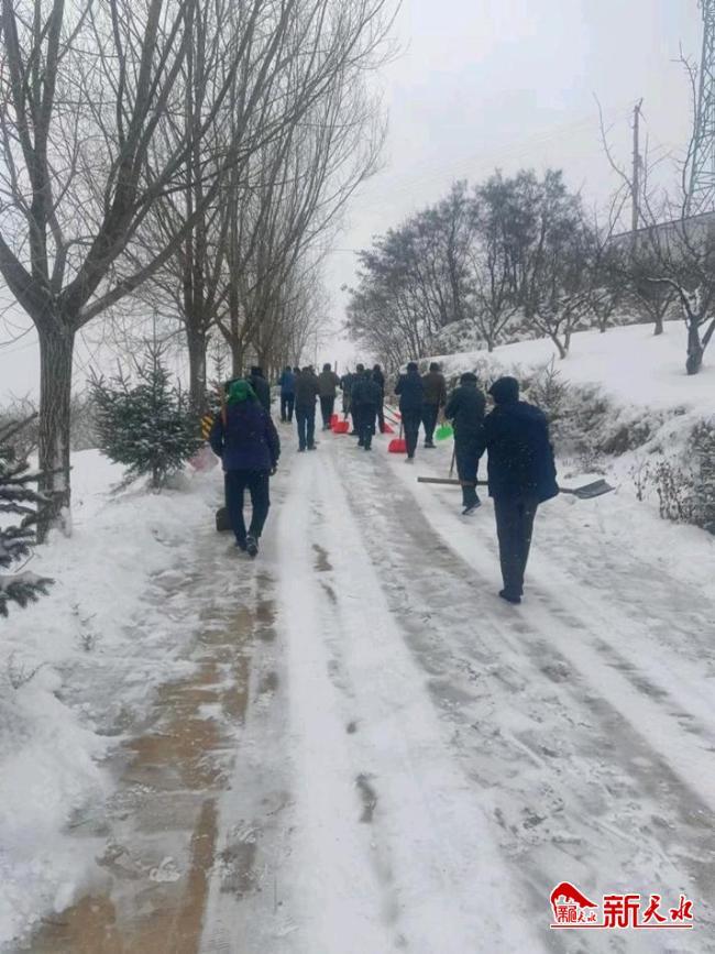 新天水讯 2月12日,大雪悄然而至,秦安县千户镇大街小巷白雪皑皑,银装素裹,雨雪天气给山区交通及群众出行带来了困难。为保障辖区交通道路畅通、群众出行安全,千户镇党委、政府以雪为令,及时组织全镇干部、新时代文明实践志愿者、公益性岗位人员等300多人,对通村公路、村主干道、机关及村部院内的积雪进行清扫。
