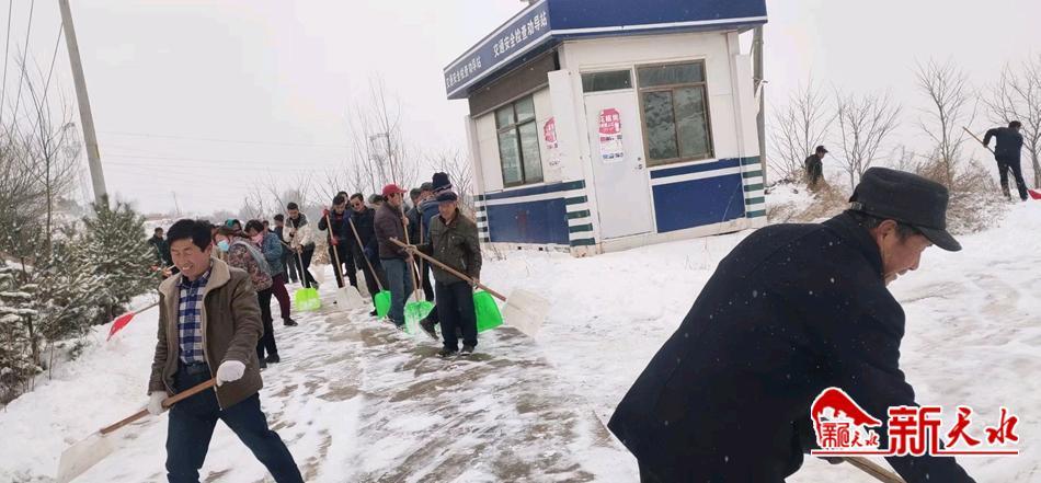 尽管户外气温很低,但大家热情高涨、干劲十足、不畏寒冷,挥舞着除雪工具,相互配合,你铲我扫,一派热火朝天的景象,一点点将积雪铲起集中堆放,干部群众一条心,为全镇各村开辟了一条“平安路”。