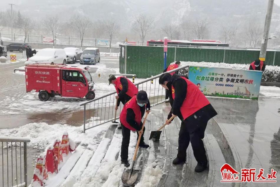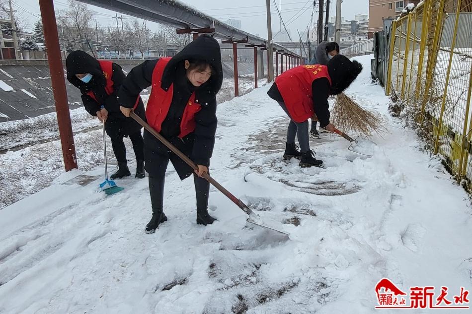 2月13日,秦州区中城街道办绿色市场社区、天水郡街道办西十里社区组织辖区单位及居民党员对周边和主街道进行清扫路面积雪,虽然天气寒冷,但志愿者们干劲十足,所有干部职工纷纷加入扫雪队伍中来。大家争先恐后,顶着严寒,呵着冷气,扬起铁锨、扫把,分工明确,进行扫雪铲冰,在大家的通力合作下,辖区内主要出行路面上的积雪已被清扫干净,临街各门店户主也自觉清扫门前雪,街道内外道路畅通无阻,在场居民一致称赞叫好。