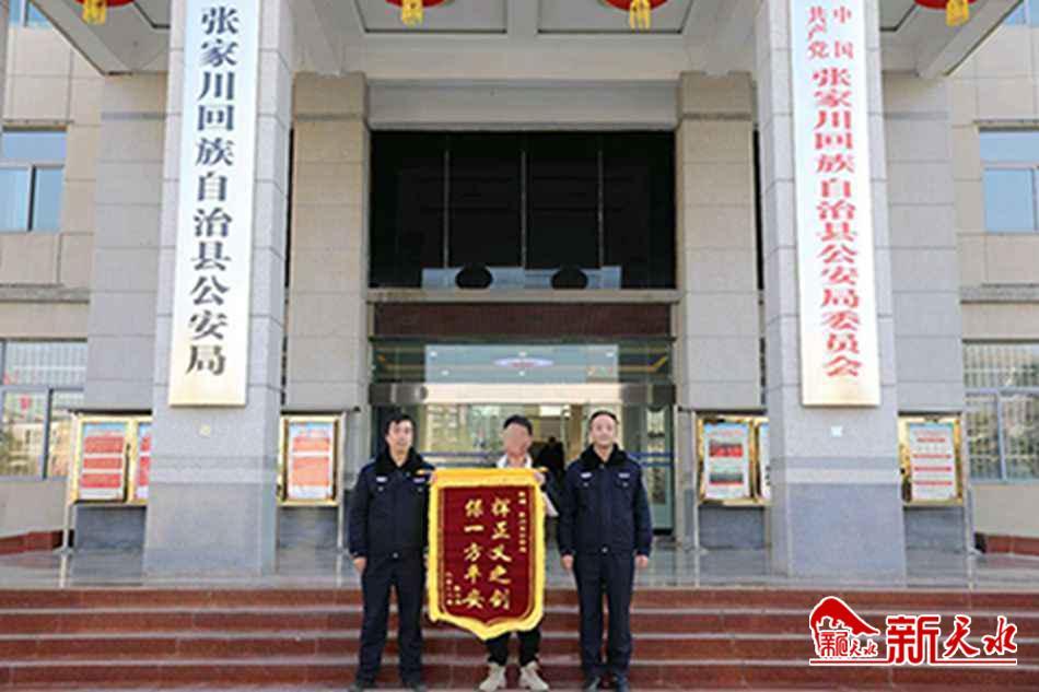 新天水讯 近日,麦积区的张先生前往张家川县公安局,向办案民警送去了一面印有“挥正义之剑,保一方平安”的锦旗,感谢民警帮其追回被骗资金6万余元。
