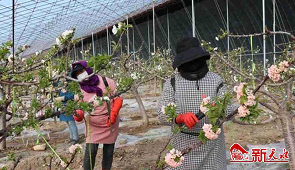 新天水讯【新甘肃·甘肃经济日报记者吕霞 通讯员骆诚】这两天,如果你路过甘谷县安远镇巩川村的塑料大棚,你一定会被这里的景象深深吸引。只见繁茂的樱桃花竞相绽放,一簇簇洁白的花朵挂满枝头,团团若絮,袅袅如烟,如一条条白色的玉带萦绕开来……大棚内,果农们正忙着给樱桃树疏花浇水,以保证樱桃果实正常生长发育、丰产丰收。
