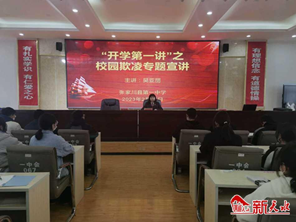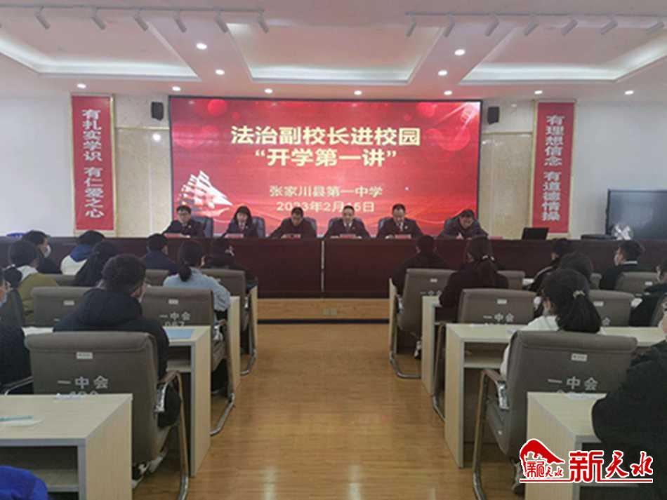 新天水讯 2月15日下午,张家川县人民法院党组书记、院长王海洲,立案庭负责人吴亚丽走进张家川县第一中学,为学生们带来春季开学“法治第一课”,以进一步加强校园法治教育,充分发挥法治副校长的法治宣传教育作用,预防和减少青少年违法犯罪,为未成年人营造良好的法治环境。