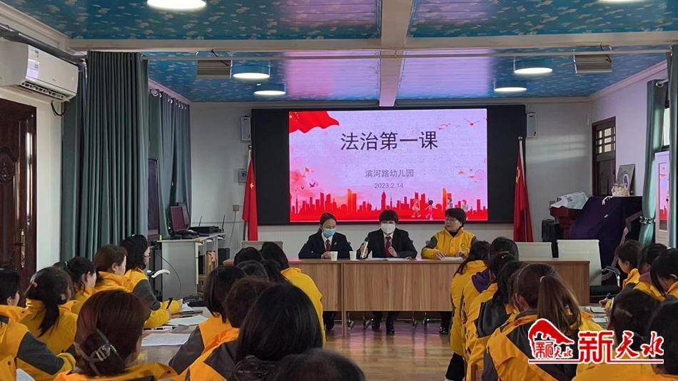 新天水讯【记者张彬霞】为持续深入推进法治进校园工作、助推平安校园建设,进一步强化少年法庭职能作用,日前,麦积区人民法院北道埠法庭庭长郭红作为滨河路幼儿园法治副校长,为该园30多名教职工带来了一堂丰富的法治教育“开学第一课”。