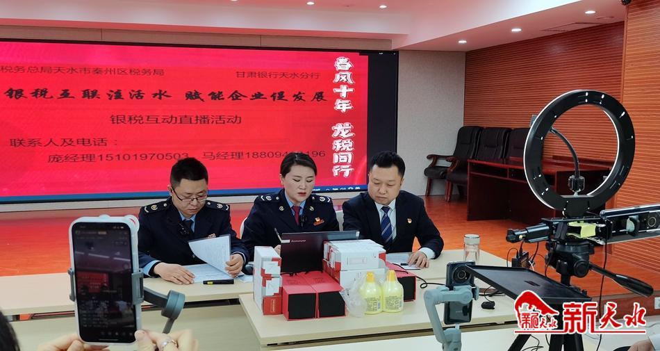 秦州税务紧绕2023年“便民办税春风行动”主题“办好惠民事,服务现代化”,紧扣省委、省政府“三抓三促”行动主旨,紧跟优化营商环境事项措施,2月24日,联合甘肃银行,依托“陇税雷锋”钉钉群组直播间和“天水税务”“龙稅云”直播间,开启了2023年第一场“银税互联注活水,赋能企业促发展”“银税互动”专场直播。